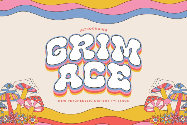 Grimace Display Font is a groovy psychedelic display font with quirky, bubbly shapes and a retro soul. It’s the perfect throwback to the ’60s and ’70s, great for vintage posters, album art, fashion branding, and creative campaigns that want to stand out with nostalgic flair.