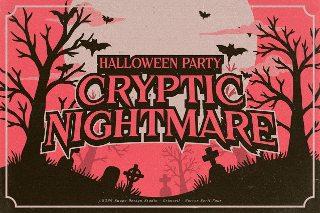 Grimveil Font is a gothic-inspired serif font that captures the essence of horror, mystery, and dark elegance. With sharp, haunting letterforms and dramatic details, Grimveil is perfect for horror movie posters, book covers, music artworks, Halloween events, and any design that seeks to evoke an eerie and chilling atmosphere.