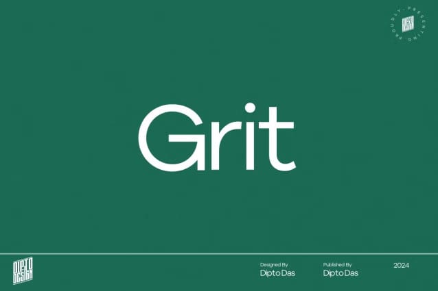 Grit Font – a sans serif typeface that embodies strength and simplicity. With a modern and clean design, “Grit” is versatile, making it ideal for a wide range of design applications. Its bold characters exude confidence, making it perfect for impactful headlines, logos, and branding.