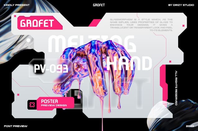 Grofet Display Font is the experimental modern font, cutting-edge typographic creation that pushes the boundaries of traditional design, offering a bold departure from conventional fonts. This avant-garde typeface seamlessly blends modern aesthetics with an experimental twist, resulting in a visually striking and innovative design.