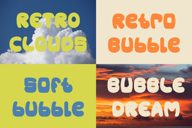 Groovy Clouds Groovy Bubble Font reflects a retro and groovy style inspired by vintage lettering and cheerful pop culture aesthetics. The overall mood feels playful, light, and friendly, with a nostalgic character that suits expressive branding. This font works especially well for logos, branding systems, headlines, posters, packaging, and advertising materials. It also fits titles, book covers, magazine layouts, stickers, greeting cards, and creative business projects. The bold shapes help messages stand out quickly while remaining easy to read. Groovy Clouds Groovy Bubble Font supports designers who want to communicate joy, creativity, and warmth. The font feels suitable for both digital and print use, especially when personality matters. Groovy Clouds Groovy Bubble Font adds charm and visual energy to projects that aim for fun, retro, and bold expression.