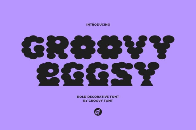 Groovy Eggsy Font is a bold decorative font with a unique round appearance reminiscent of a cloud.