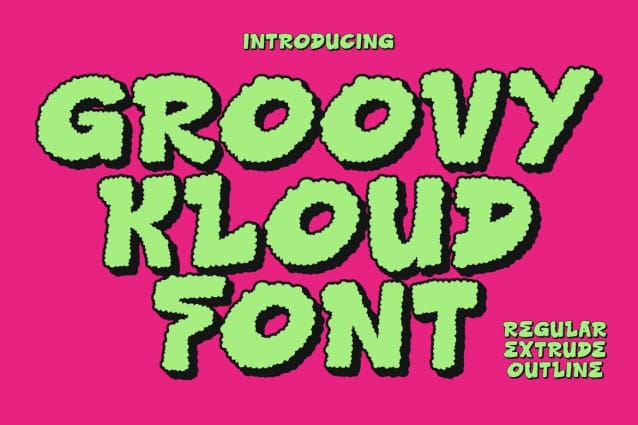 Whether you’re creating a cheerful headline, a playful logo, or an imaginative poster, Groovy Kloud adds a fun, charming style to your work.