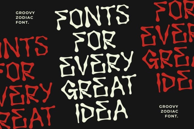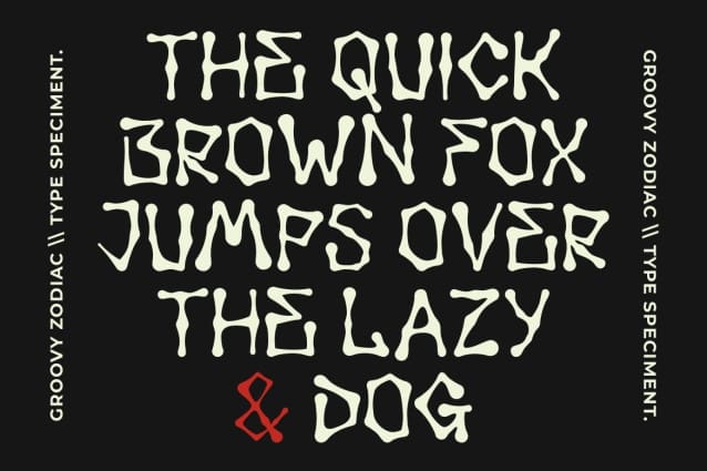 Groovy Zodiac Font is a hand-drawn display font crafted to mimic the appearance of bones. This unique font is versatile and can be used for various design purposes such as creating Halloween-themed posters, spooky party invitations, horror movie titles, gothic-themed graphics, or any project that requires a macabre and intriguing touch. Its handcrafted and eerie aesthetic can add a distinctive and memorable element to a wide range of design projects.