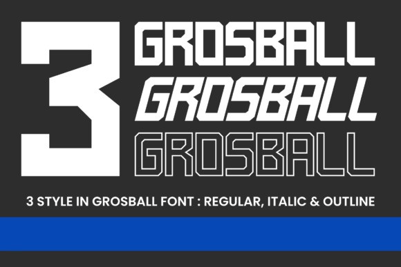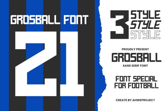 Grosball Display Font is a display font devoted to sports design. This font is devoted primarily to football design. Grosball fonts can also be used to design logos, posters, magazines, jerseys, t-shirts, and others.