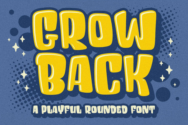 “Grow Back” font is ideal for branding projects or packaging that need a quirky and playful feel. Perfect for a wide range of applications, from crafting eye-catching headings and dynamic logotypes to bringing energy to quotes, apparel, invitations, flyers, posters, greeting cards, product packaging, book covers, and printed quotes.