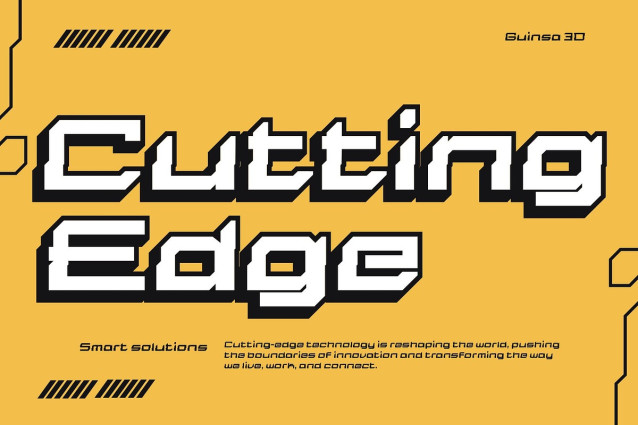Sharp Geometric Forms for a Cutting-Edge Look Each character in Guinsa 3D is constructed with clean lines and angular precision, delivering a highly structured and bold feel. Its geometric construction communicates a sense of control, clarity, and technical sophisticationâmaking it a natural fit for contemporary and tech-forward designs.