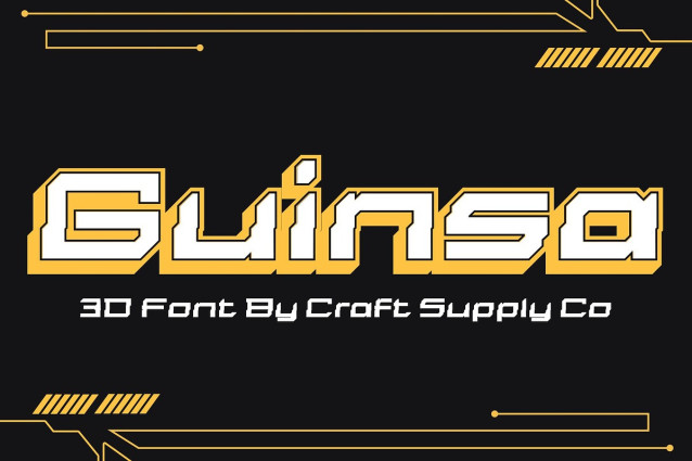 3D Effect for Dynamic Visual Energy The integrated 3D styling elevates the font with a futuristic sense of space and form. This layered visual depth brings life and movement to headlines and titles, giving your design a bold presence and eye-catching energyâespecially effective in gaming visuals, digital interfaces, and tech branding. Guinsa 3D shines in projects that require a forward-thinking edge.