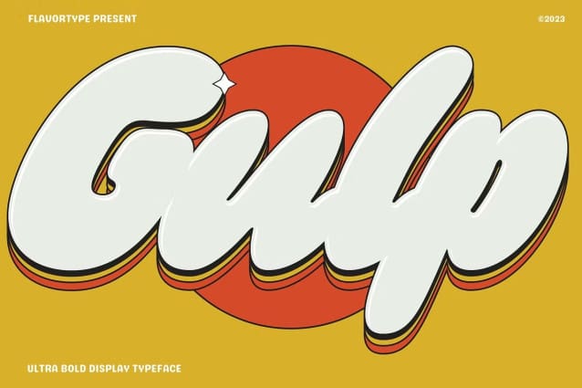 Gulp Display Font, is a playful and fun font inspired by pop art, hippie and comic book styles. It’s groovy, funky and retro with an ultra-bold and fat appearance, making it perfect for eye-catching headers and short word texts.