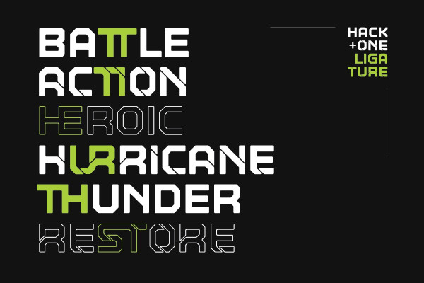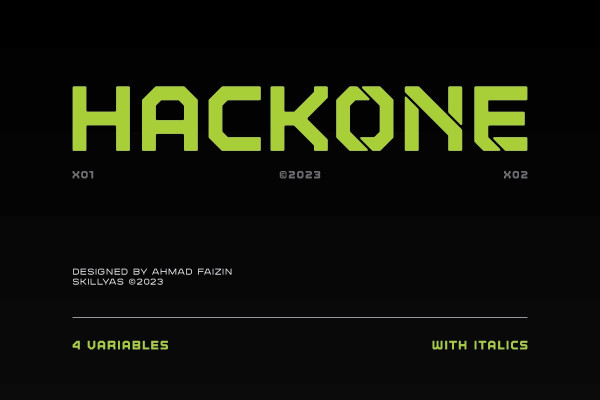 Hackone comes in four variations, regular, slice edge, and outline. and also equipped with italic oblique.