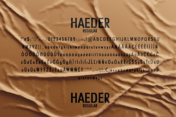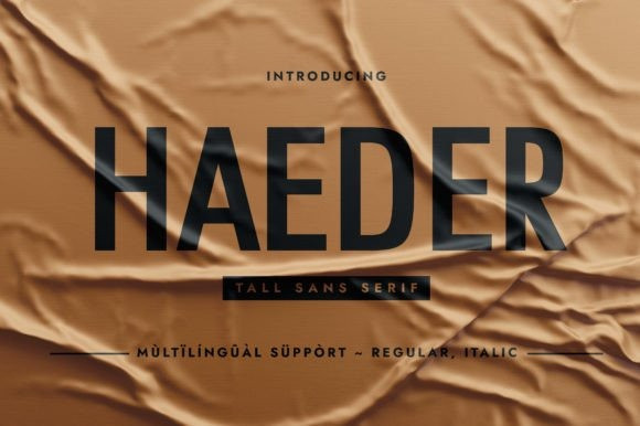 Haeder Font is a tall, condensed sans serif typeface. Its glyphs height renders it a good choice when you are working on creative ideas that require a font that functions as a display sans serif with tall glyphs construction.