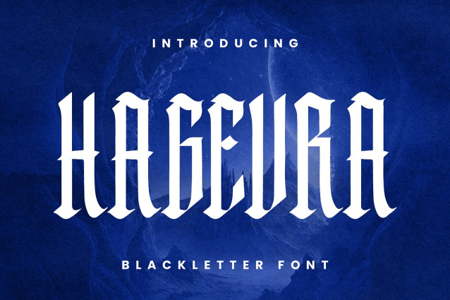 Hagevra Blackletter Font is a bold and striking blackletter font that blends traditional Gothic aesthetics with a modern edge. Featuring tall, sharp, and assertive letterforms, Hagevra makes a powerful statement in every design. Whether you’re creating motivational posters, album covers, or dramatic branding, this typeface delivers strength, intensity, and style.