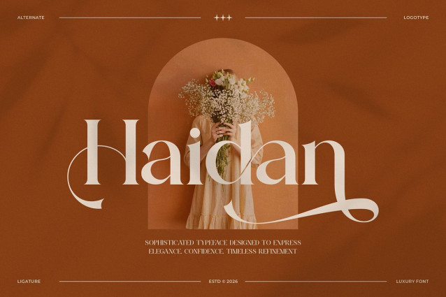 Haidan Font is a modern and classy font type for all branding and logo designs. This modern and classy Serif font has a beautiful character. This font is suitable for invitation card designs, cool logos, movie titles, movie names, business cards, book titles, brand names, and various other designs. Haidan Serif is a smooth serif font that exudes sophistication and the moment. Its stylish ligatures make this font a perfect partner for any project.