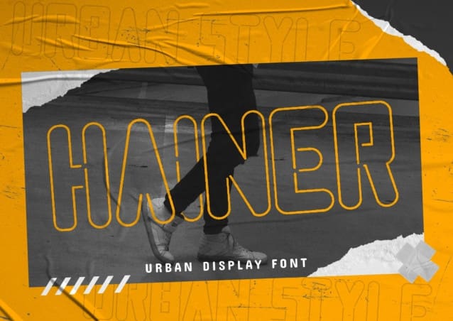 Hainer Display Font, an urban sans serif font that captures the raw energy of streetwear, hip-hop culture, and the vibrant essence of youth. This typeface is meticulously crafted to leave a lasting impression, whether you’re designing attention-grabbing posters, dynamic magazine layouts, impactful brand logos, captivating sleeve covers, enticing party flyers, motivational quotes, or trendy text overlays on any background image. Embrace the undeniable allure of HAINERS as it injects your designs with a cutting-edge appeal and modern flair. Let this font become the voice of urban expression, elevating your creations and making a bold statement that resonates with the spirit of the streets. Unleash the urban power of HAINERS and witness your designs come to life with an electrifying energy.
