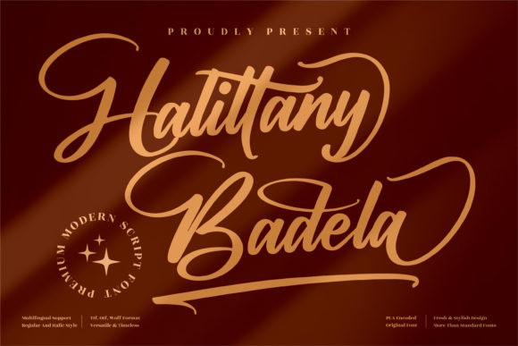 Halittany Badela is PUA encoded which means you can access all of the amazing glyphs and ligatures with ease!