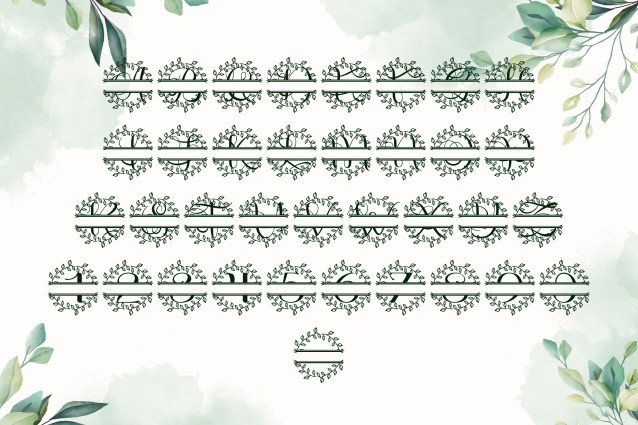 Halovira Split Font is a beautifully refined serif split monogram font featuring graceful floral flourishes. With a horizontal divide in each uppercase letter, this typeface offers an elegant space for names, initials, or meaningful phrases—perfect for wedding signage, DIY gifts, and personalized crafts. The botanical embellishments add a romantic and timeless touch to every design.