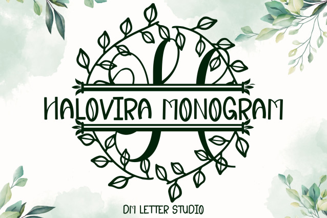 This font is used only for demos (Demo license). If you want to use this font for commercial use please contact: https://dmletterstudio.com/product/halovira-split-monogram/