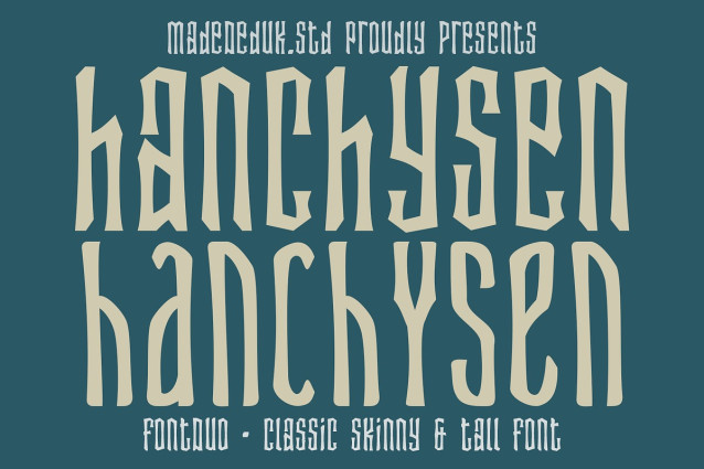 Hanchysen Font is a classic skinny and tall font duo with dramatic verticality, high contrast strokes, from high-fashion headlines layouts. A sleek and sharply styled ultra-condensed font crafted for standout display work. This font fits perfectly in logos, contemporary posters, album art, and lifestyle driven branding. Whether you’re creating digital content or printed materials.