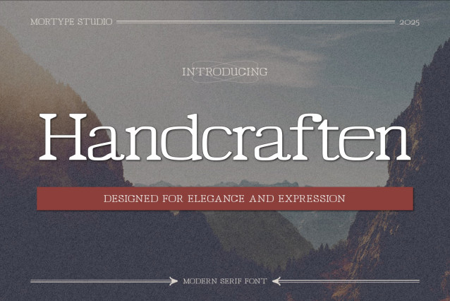 Handcraften Font is a classy serif font that brings elegance to your text. With its sleek lines and sophisticated curves, it adds a touch of refinement to any project. Perfect for fashion magazines, stylish invitations, or upscale branding, it exudes confidence and sophistication. Whether you’re aiming for a timeless look or a modern edge, this font is sure to elevate your design with its understated elegance.