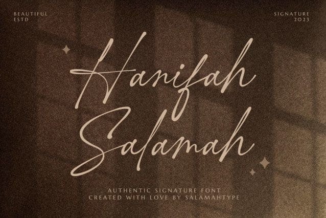 Hanifah Salamah font is perfect for projects like social media, advertising, product packaging, product design, labels, photography, watermarks, invitations, stationery, and more