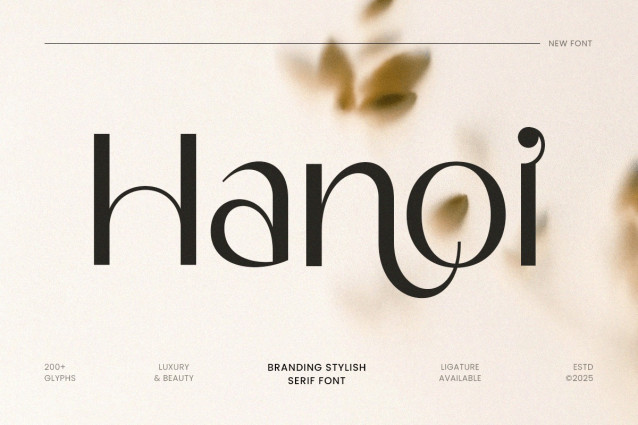 Hanoi Font is an elegant, brand-focused serif typeface designed to bring sophistication and elegance to your creative projects. With its refined letterforms and balanced proportions, it’s ideal for logos, branding, packaging, editorial designs, and high-end digital or print projects. Combining a modern aesthetic with classic serif elements, Hanoi offers a polished, professional look while remaining versatile and legible. It’s perfect for designers seeking a chic, elegant, and timeless style.