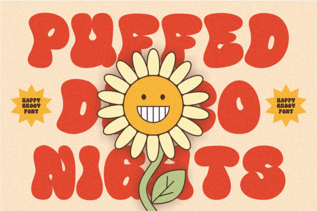Happy Groov Font – Layered Retro Font, a throwback typeface inspired by the bold, cheerful spirit of the 60s and 70s. Its chunky, bubble-like letterforms are built with smooth curves and exaggerated counters, making every character pop with energy. The layered structure adds dimension, while the heavy outline injects a lively, almost cartoonish rhythm. Designed to capture attention and exude joy, this font radiates warmth and playfulness, perfect for any retro-themed composition.