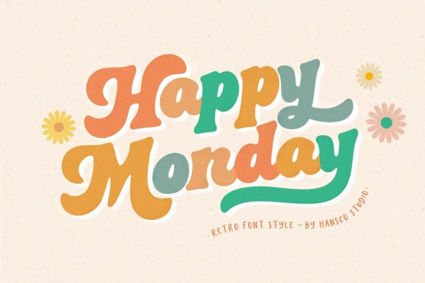 Happy Monday Retro Font, is a retro and bold display font. Use this display font to add that special retro touch to any design idea you can think of!. Masterfully designed to become a true favorite, this font has the potential to bring each of your creative ideas to the highest level!