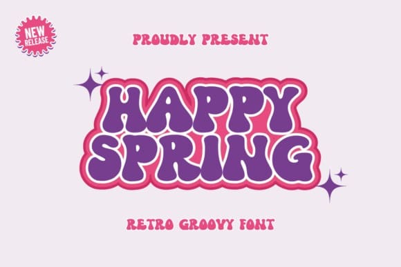 Happy Spring Font A cool and adorable retro groovy-inspired display font. This font is great for various creative project needs such as news posters, posters, product packaging, quotes, interior design, t-shirts, graphic clothing, online banners, social media, greeting cards, initials, logo designs, event banners, exhibitions, book covers, ebook cover, article title, blog title, craft, DIY, and many other creative ideas