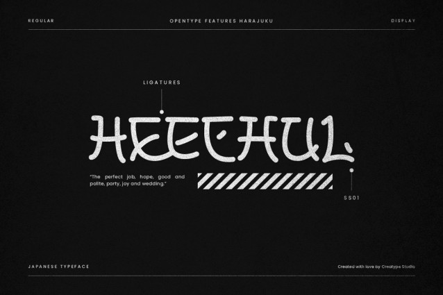 Harajuku Font is a Japanese style typography specially crafted by experts to produce exquisite and captivating strokes of the font. There are lots of features in this Harajuku font pack, so you can be creative again of course. Harajuku is perfect for all your big projects.