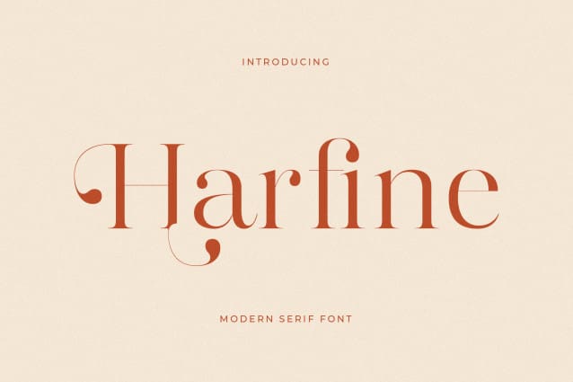 Harfine Font – Modern Serif Font , from Letterena, is a Luxury Serif font, suitable for any projects such as: logos, branding projects, homeware designs, product packaging, mugs, quotes, posters, shopping bags, t-shirts, book covers, name card, invitation cards, greeting cards, label, photography, watermark, special events, and all your other luxury and beautiful projects that need a Luxury serif taste.