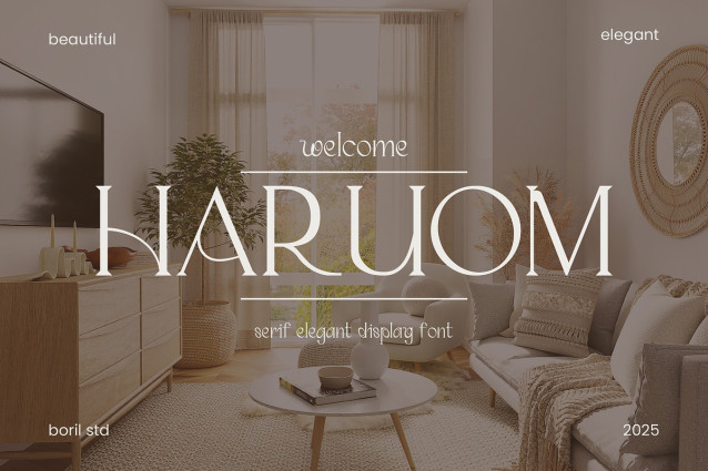 This font is used only for demos (Demo license). If you want to use this font for commercial use please contact: https://creativemarket.com/BorilStd/291656631-HARUOM-Serif-Display-Font?u=fontlot123