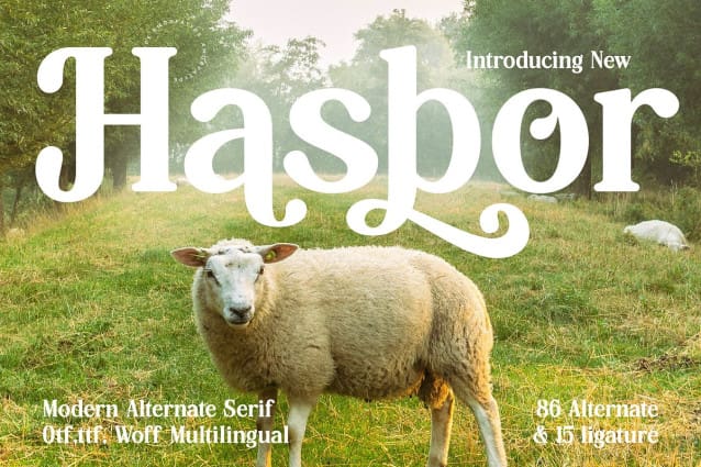 Hasbor Font is a bold and modern alternate serif font that redefines elegance with a contemporary twist. Featuring clean, geometric serifs and refined alternate letterforms, this font exudes sophistication and creativity, making it an excellent choice for diverse design projects. The harmonious contrasts in stroke weights and its distinct design elements give Hasbor a polished and unique appearance, perfectly balancing classic tradition with modern innovation.