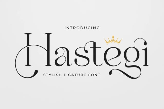 Hastegi Font is a stylish serif font that elevates your typography with its exquisite ligatures. This font merges classical elegance with a contemporary twist, offering a unique and sophisticated appeal. Ideal for projects requiring a touch of refinement, “Hastegi” seamlessly blends the artistry of ligatures with a timeless serif design, making it a perfect choice for creating stylish and distinctive visual experiences.