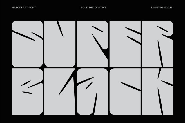Hatori Font is an extra-bold, condensed display font with sharp, aggressive, and modern character, designed to deliver strong visual impact. Suitable for headlines, logotypes, posters, merchandise, and branding that aims to stand out, this font ensures a bold, distinctive, and easily recognizable appearance across both print and digital media.