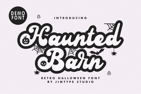 Haunted Barn Font – Retro Halloween Font from Jimtype Studio. Welcome to the ‘Haunted Barn‘ Font Collection! Dive into the nostalgic vibes of the 70s with our retro-inspired script font, perfectly infused with the eerie essence of Halloween. Unleash your creativity and add a touch of vintage spookiness to your designs with ‘Haunted Barn‘. Explore our versatile collection today and let your imagination run wild. Get ready to turn ordinary into extraordinary with this one-of-a-kind font. Happy haunting!