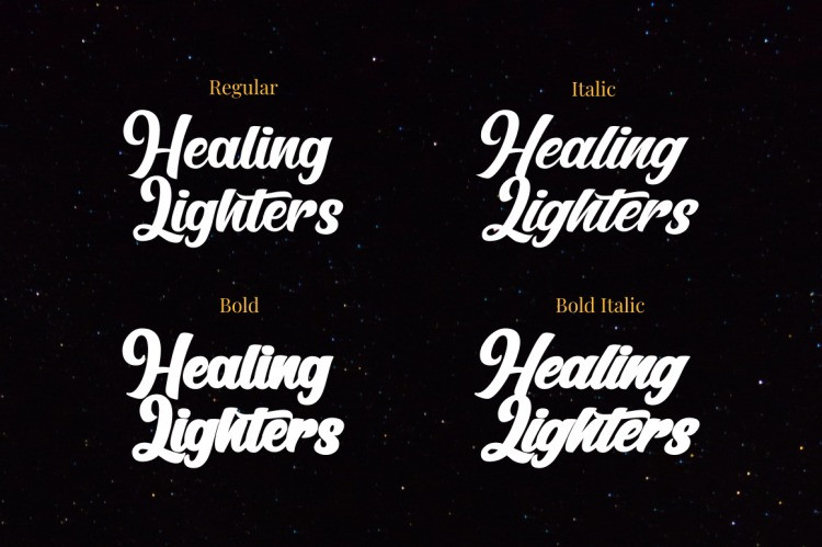 Healing Lighters Script Font is a modern bold script font with 4 style. Made with care to get the best curves to support the design you make more elegant.