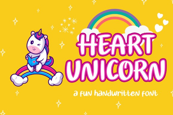 Heart Unicorn Display Font is a playful and quirky display font. Whether you are using it for cartoon-related designs, children’s games, quotes, titles, brand names, book covers, posters, or just any creation that requires a touch of beauty, this font is a great choice.