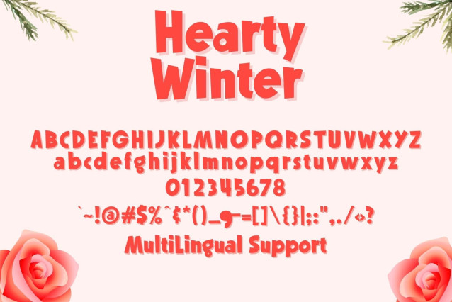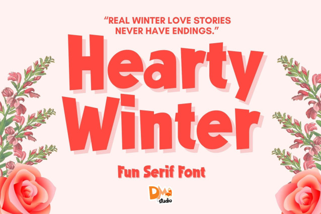 Hearty Winter Font is a warm and cheerful seasonal font designed to bring a touch of festive coziness to your winter-themed creations. With heart-shaped elements and rounded, soft letterforms, it’s perfect for holiday cards, seasonal branding, festive posters, and cozy crafts that aim to spread love and winter warmth.