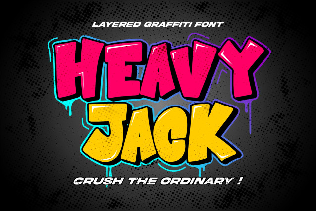 Heavy Jack was created to embody the raw energy of graffiti walls and urban culture. Its layered construction—featuring a strong main font and a complementary shadow style—lets you create designs that feel bold, gritty, and full of personality.