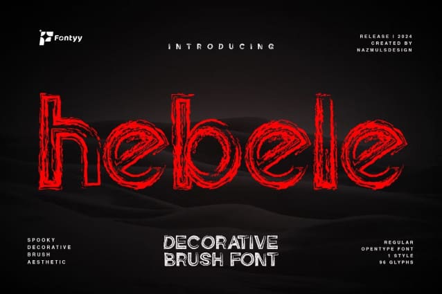 Hebele Display Font a dynamic Decorative Brush font that exudes creativity and artistic flair. Perfectly crafted for designs that demand a bold and expressive touch, Hebele brings a sense of movement and texture to every letterform. Whether used for branding, posters, movies, or social media graphics, this font is designed to stand out and make a statement. With its unique strokes and handcrafted feel, Hebele Display adds a personal and artistic vibe to any project, making it the go-to choice for designers seeking a distinctive and captivating typeface.