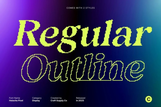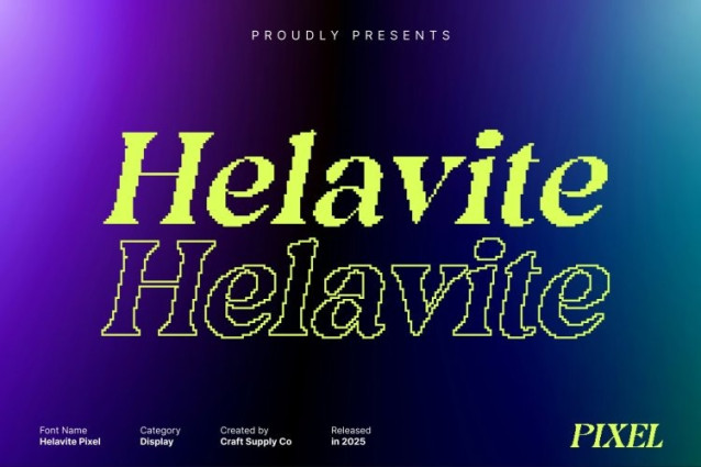Helavite Pixel Font Imagine the timeless charm of serif letterforms infused with pixel-inspired design. This retro display font brings together traditional typographic elegance and modern digital creativity, creating a unique balance between classic and contemporary aesthetics. Each character carries personality while maintaining readability and style.