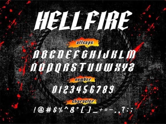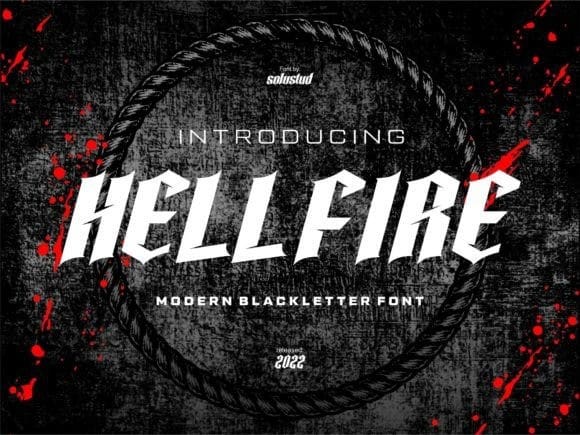 Hellfire Blackletter Font, is a modern black letter font with a bold and unique swift cut. Use it for product packaging, branding, t-shirts, magazines, logos, posters, or any other project that requires bold typography.