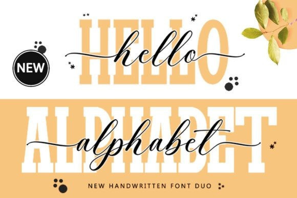Hello Alphabet Font Duo is a modern handwritten font duo that combines a bold slab serif with an elegant script. The slab serif delivers strength and impact, while the flowing script adds a touch of charm and sophistication. Together, they create a striking contrast perfect for logos, invitations, posters, branding, and stylish social media graphics.