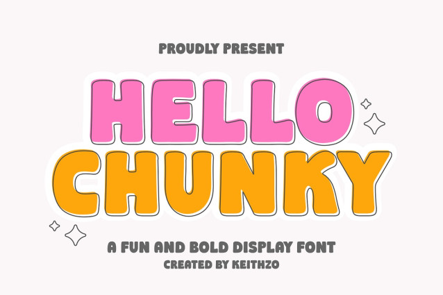 Hello Chunky Font a lively and bold display font designed to infuse your projects with a sense of fun, energy, and joy. This chunky, bubble-inspired typeface offers thick, rounded characters that can powerfully highlight every word, making it the perfect pick for attention-grabbing titles, lively posters, and stand-out branding identities.