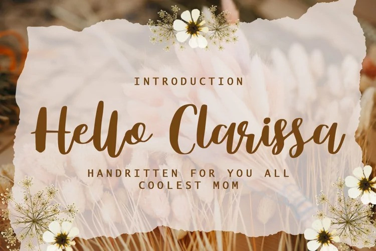 Hello Clarissa Script Font is a lovely and incredibly delicate handwritten font. It is PUA encoded, which means that you can access all of the glyphs and swashes with ease! It features a varying baseline, smooth lines, gorgeous glyphs and stunning alternates. Fall in love with its incredibly versatile style and use it to create spectacular designs!