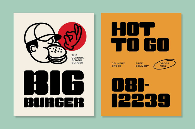 Use it anywhere you need loud, lovable type: branding, posters, menus, stickers, greeting cards, children’s branding, funky event posters or party invites, packaging, apparel, labels, social graphics, and headlines.