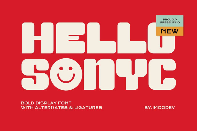 Hello Sonyc Font is a bold playful display font built from chunky modular shapes and ultra rounded corners. The letters sit between bubble type and geometric slabs, that fuses retro funk with modern modularity.