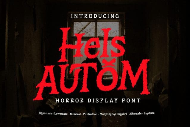 Hels Autom Font is a horror display font that’s sure to send chills down your spine. Its jagged, irregular letterforms evoke a sense of fear and unease, making it the perfect choice for horror movie posters, book covers, and Halloween-themed designs. But Hels Autom is more than just a font, it’s a way to create an atmosphere of suspense and intrigue. With Hels Autom, your designs will not only be visually striking but also create an atmosphere that keeps your audience on the edge of their seats. It’s like a shadow in the dark, mysterious and chilling.