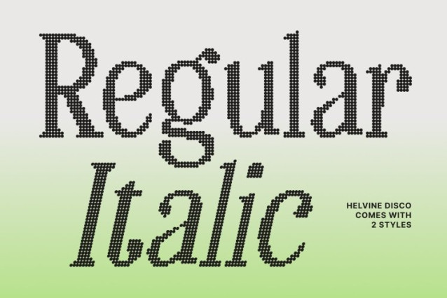 This font is used only for demos (Demo license). If you want to use this font for commercial use please contact: https://craftsupply.co/product/helvine-disco/