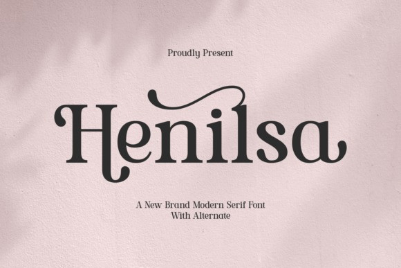 Henilsa Font, a new brand modern serif font. The font is distinguished by its elegant and unique alternate characters, such as the prominent swash, which gives it a romantic and decorative flair.